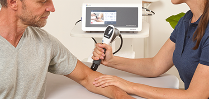 Fysiotherapie met schokgolven om uw pijngebieden te behandelen.